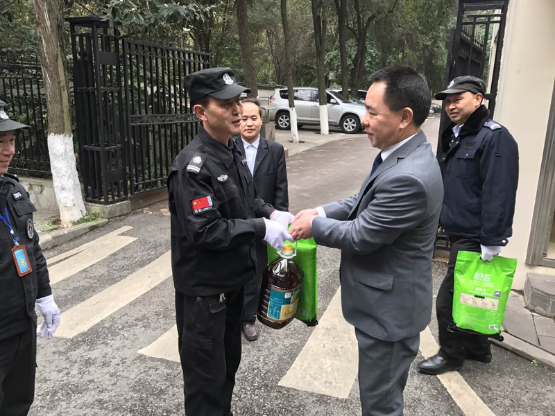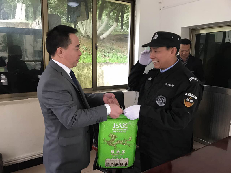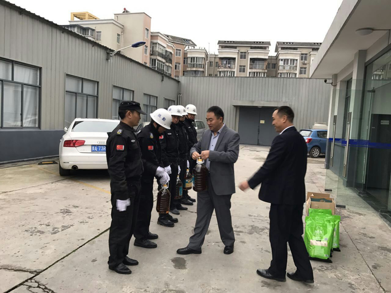 (陟翔集團(tuán)股東代表李鵠為各點(diǎn)保安員送上慰問(wèn)品)