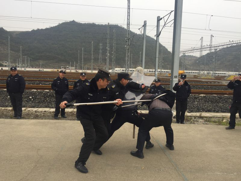 三、按照客戶單位《反恐怖主義法》宣傳教育活動(dòng)周安排,于2016年12月21日14:00-16:00,由駐車(chē)輛段動(dòng)車(chē)所保安隊(duì)開(kāi)展反恐處突實(shí)作演練,共計(jì)26名駐車(chē)輛段動(dòng)車(chē)所保安隊(duì)隊(duì)員參加演練,于2016年12月22日9:00-10:00,由駐車(chē)輛段、客運(yùn)段保安隊(duì)開(kāi)展反恐處突實(shí)作演練,共計(jì)12名駐車(chē)輛段、客運(yùn)段保安隊(duì)隊(duì)員參加演練。本次演練以反恐怖主義法教育、反恐器材使用、反恐團(tuán)隊(duì)配合和應(yīng)對(duì)刀斧砍殺實(shí)作演練為主,有效提高了職工反恐應(yīng)急處置能力。