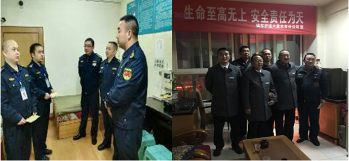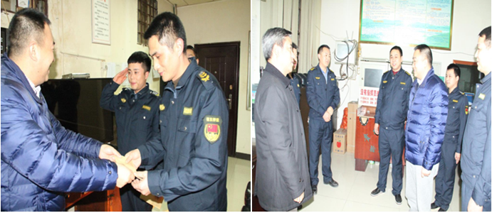 在新年元旦即將到來之際,2015年12月31日晚,總公司王訓(xùn)江董事長趕赴銅仁,在銅仁本部總經(jīng)理陳葉、副總經(jīng)理劉興華、劉樹等陪同下,深入一線,看望和慰問堅(jiān)守崗位、履職盡責(zé)的金庫守護(hù)員工,對他們在2015年的艱辛付出給予了充分肯定和高度評價(jià),并帶去了各級(jí)領(lǐng)導(dǎo)對員工的關(guān)愛、新年的祝福和期望,使員工倍受鼓舞和感動(dòng),一致表示要更加努力工作,以更好的工作成績回報(bào)公司的厚愛。王訓(xùn)江董事長同時(shí)還看望和慰問了客戶單位的工作人員。根據(jù)王訓(xùn)江董事長的指示,黔東南州分公司總經(jīng)理黃水波、六盤水市分公司總經(jīng)理夏誠豇,于元旦前夕分別帶領(lǐng)班子成員看望和慰問了在崗守護(hù)隊(duì)員。