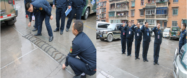 2015年12月15日至21日,鎮(zhèn)東護(hù)運(yùn)有限公司黔東南州分公司派出兩個(gè)工作組分別對所屬16個(gè)守押中隊(duì)進(jìn)行年終考核暨2016年元旦節(jié)前安全檢查。考核突出:理論筆試、擒敵拳、徒手隊(duì)列、驗(yàn)槍動(dòng)作、防暴槍分解結(jié)合、駕駛員日常檢查、輪胎更換及防滑鏈安裝、滅火器的安全使用、4X10米折返跑、俯臥撐(男)、仰臥起坐(女)。檢查登記統(tǒng)計(jì):《會(huì)議簽到簿》、《談心記錄簿》、《外來人員登記簿》、《押運(yùn)登記簿》、《槍支領(lǐng)用歸還登記簿》、《武器擦拭保養(yǎng)登記簿》、《車輛交接登記簿》、《守押中隊(duì)款箱(包)交接登記簿》、《守押中隊(duì)要事登記簿》、《金庫管庫、守庫值班登記簿》、《值班登記簿》、《學(xué)習(xí)筆記本》、《中隊(duì)會(huì)議記錄本》、《骨干會(huì)議記錄本》;對車(組)長以上的管理人員進(jìn)行民意測評和個(gè)別談心。安全檢查包括:中隊(duì)的消防器材、報(bào)警設(shè)備、安防設(shè)施、用電線路及電器等;槍支性能是否良好,子彈數(shù)量是否與配發(fā)數(shù)量相符,領(lǐng)用歸還是否規(guī)范等;鈔車的管理,日常維護(hù)保養(yǎng),運(yùn)行狀況,駕駛員是否違章駕駛等。