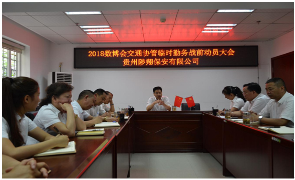 2018中國國際大數(shù)據(jù)產(chǎn)業(yè)博覽會(huì)于5月26日至29日在貴陽舉行,作為貴州保安行業(yè)的領(lǐng)軍企業(yè),貴州陟翔保安有限公司承接了貴陽數(shù)博會(huì)園區(qū)500名交通協(xié)管臨時(shí)勤務(wù),為確保此次臨時(shí)勤務(wù)的順利實(shí)施和完成,5月18日下午,總公司全體員工、保安公司全體領(lǐng)導(dǎo)及大隊(duì)長在總公司會(huì)議室召開了2018數(shù)博會(huì)交通協(xié)管臨時(shí)勤務(wù)戰(zhàn)前動(dòng)員大會(huì),會(huì)上,總經(jīng)理陳春生同志對此次臨時(shí)勤務(wù)作出重要指示,并對此次臨時(shí)勤務(wù)做了統(tǒng)一安排部署。數(shù)博會(huì)勤務(wù)領(lǐng)導(dǎo)小組組長由總公司總經(jīng)理馮波擔(dān)任,指揮組組長由保安公司總經(jīng)理陳春生擔(dān)任,同時(shí)還成立了協(xié)調(diào)組、后勤保障組,新聞報(bào)道組等,對所有參與人員進(jìn)行明確分工。