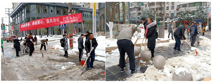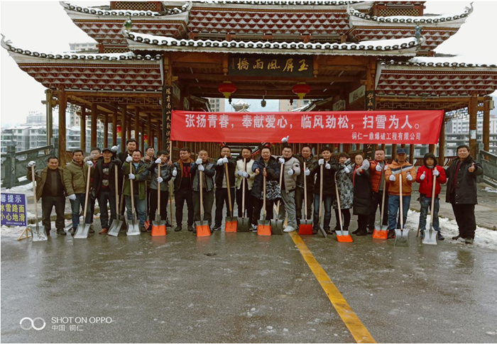 2018年12月29日晚間至12月30日白天,玉屏縣迎來立冬以來的第一場(chǎng)降雪。鵝毛般的大雪紛紛灑灑的落下,整個(gè)縣城猶如銀裝素裹,分外妖嬈!但是路面的積雪成冰,給市民出行帶來了諸多不便,為方便行人出行,31日上午,項(xiàng)目部行政人員和涉爆人員在項(xiàng)目部負(fù)責(zé)人的帶領(lǐng)下,開展了義務(wù)掃雪除冰活動(dòng)。